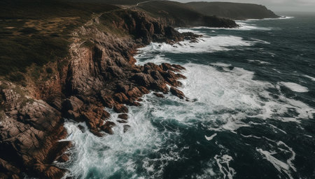 Beauty in nature high angle view of rough coastline and surf generated by artificial intelligence