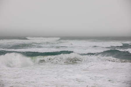 dramatic shot of ocean with foamy waves for background