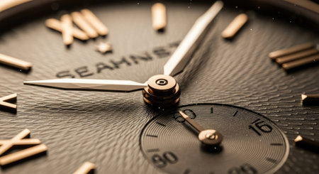 Stopwatch with metallic finishes pointing almost midnight on a colorful orange and red background, suggesting a sporting event or competition