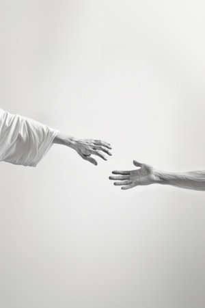A captivating black and white image of two hands reaching out, symbolizing connection and understanding. Perfect for conveying themes of unity and empathy. Generated A.I.