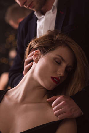 Passionate couple, romantic lovers concept. Sexy elegant people in tender passion.
