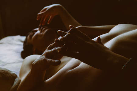 Hands of lovers caressing each other during a love game.