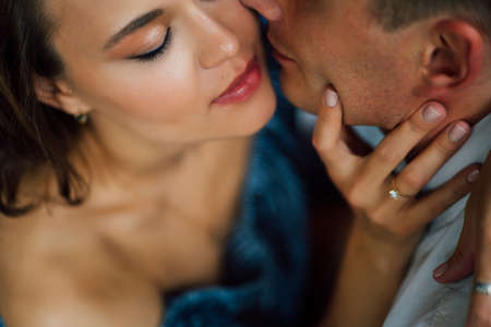 close-up of lovers man and woman. romantic relationship. honeymoon.