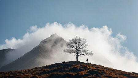 Landscape of lone trees and clouds on the top of the mountain