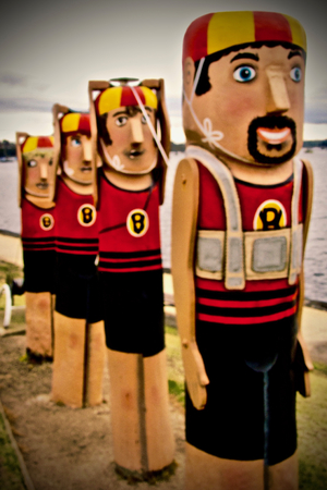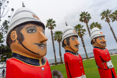 Colourful bollards on Geelong's foreshore in Geelong, Australia