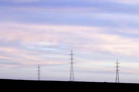 view at sunset from a high tension line on the horizon