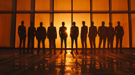 A group of soldiers stand in silhouette against a vibrant sunset, showcasing their unwavering dedication to duty