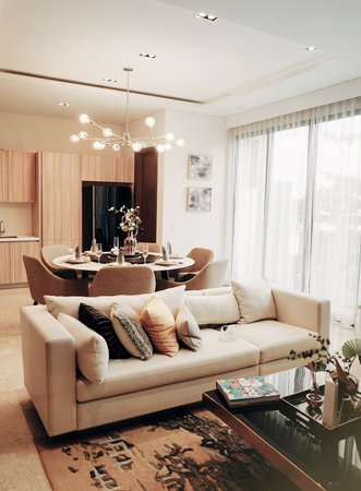 Modern luxury condo living room with furniture