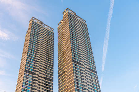 Thailand Bangkok 15 MAR 2020 Modern white skyscrapers with living apartments