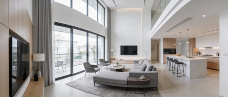 interior of modern living room in new luxury house. panorama