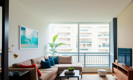A modern and minimalist home interior apartment interior colorful living