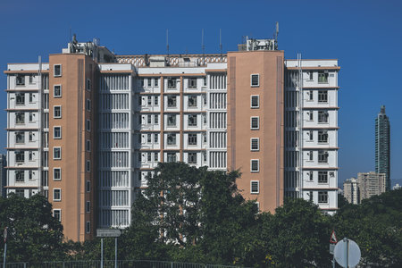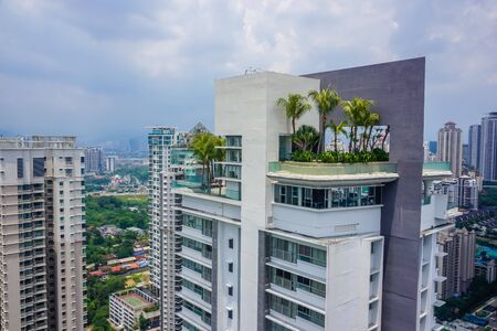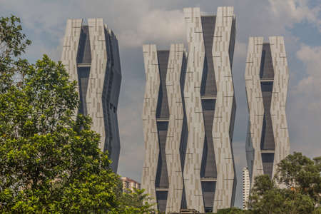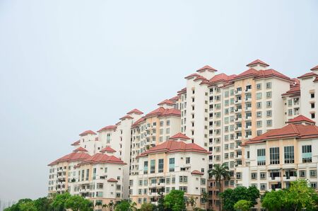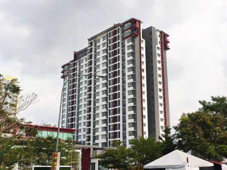 SELANGOR, MALAYSIA -JULY 22, 2020: High rise apartment building with modern facade design. Popular in the urban areas in Malaysia. Various facilities for the use of the residents are provided.
