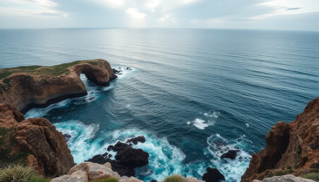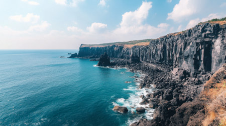 The stunning view of the cliffs and ocean at Seongsan Ilchulbong (Sunrise Peak) in Jeju, famous for its sunrise views.
