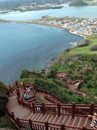 Stairs to climb Seongsan mountain in Jeju Island, South Korea.