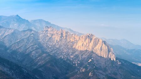 View from Ulsanbawi rock peak on sunset. Seoraksan National Park, South Corea