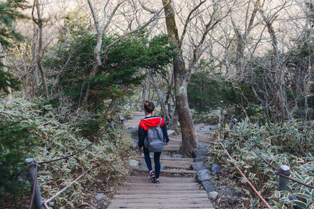 tourist with a backpack in a ptourist with a backpack in a park seoraksan