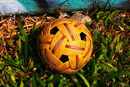 Sepak takraw ball, popular sport of southeast asian countries, soft and selective focus, outdoor sport and recreational activity concept.