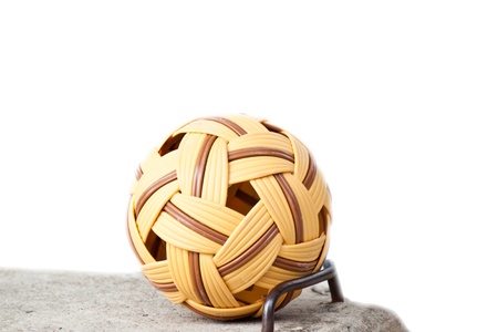 rattan ball on wood background, ball, Sepak Takraw in Thailand