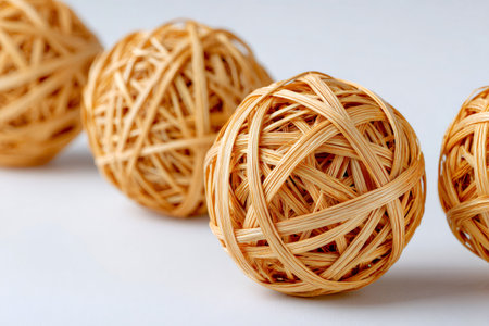 Rattan balls creating a natural, rustic decoration with a wicker texture