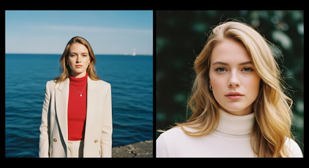 women are elegantly styled in vintage-inspired attire, showcasing timeless beauty and fashion.