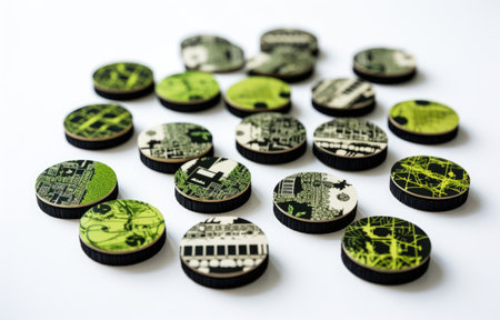 A mesmerizing view of aligned coins arranged in a row on a dark surface illuminated by soft light, symbolizing wealth, investment, and financial prosperity.