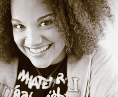 Closeup portrait of a beautiful young woman smiling and looking at camera