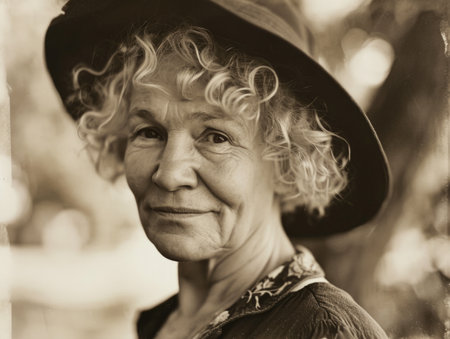 Photorealistic Old White Woman with Blond Curly Hair vintage Illustration.