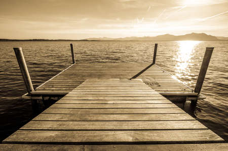 jetty at the famous chiemsee lake in bavaria - germany