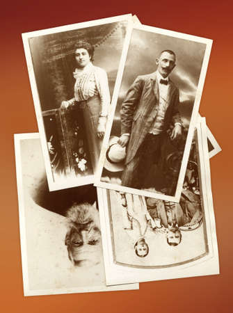 old letters and antique family photos parents, grandfather; grandmother; children nostalgic vintage pictures from ca 1900