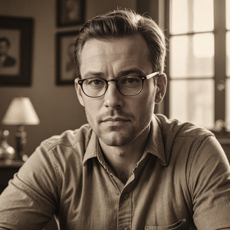 Serious MiddleAged Man in Retro Office Setting