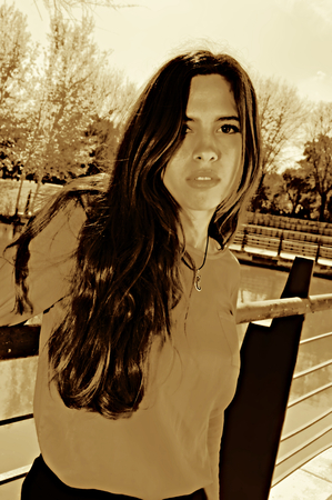 Photorealistic Teen Persian Woman with Brown Straight Hair vintage Illustration.