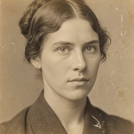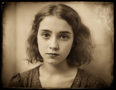 Sepia-toned vintage portrait of an elegant young woman, showcasing historical fashion and timeless beauty. Ideal for heritage, nostalgia, or documentary projects requiring an authentic antique feel.