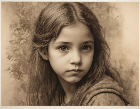 Photorealistic Teen Persian Woman with Brown Curly Hair vintage Illustration.