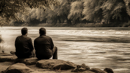 philosophical discourse by a tranquil riverbank