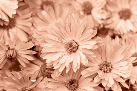 Lots of delicate Mocha brown chrysanthemums close-up. Perfect design solution. Selective focus.