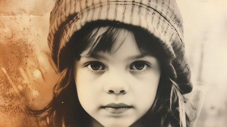 Portrait of a little girl in a hat. Photo in old color image style.