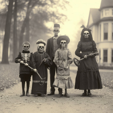 children kids halloween scary vintage photography masks 19th century horror costumes party celebrate play spooky mask