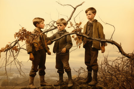 The Branch-Wielding Trio: A Captivating 3:2 Artwork