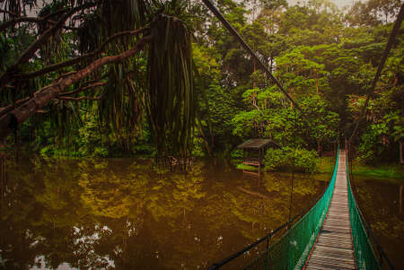 The suspension bridge over the lake in the summer, Borneo, Sabah Malaysia