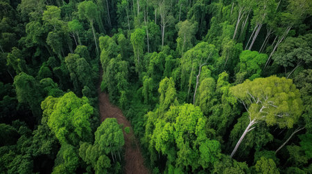 Generative AI : Aerial top down view of lush primary forest in Halmahera Indonesia