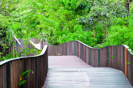 hadiness of the Bird Wave Bridge, A wave-like wooden bridge is a bridge between Queen Sirikit Park with Wachirabenchathat Park on Chatuchak, Bangkok, Thailand