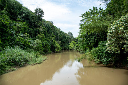 View of Pattani river from Tae Pu Su Bridge is the most famous landmark in Betong, Yala, Thailand