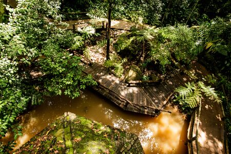 Wooden bridges of the Kuching to Sarawak Culture village. The road is made of wood Borneo, Sarawak, Malaysia