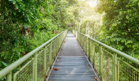View of canopy walkway in Sepilok, Borneo, Malaysia.