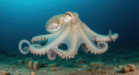 Graceful octopus gliding over seafloor in serene underwater scene