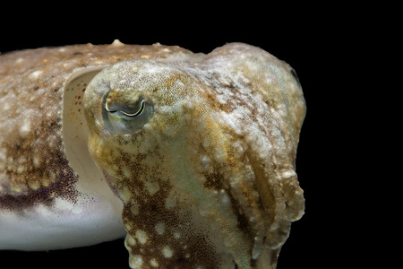 Cuttlefish or cuttles are marine animals of the order Sepiida with black isolated background.