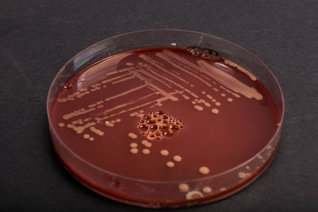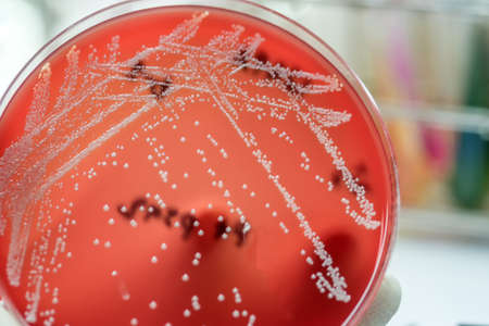 Salmonella enteritidis bacterial colonies on blood agar plate, medical background
