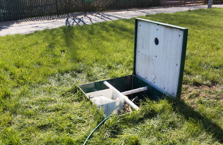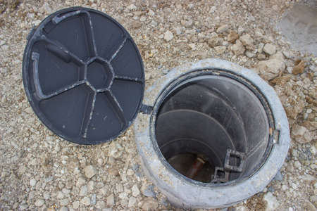 sewer cesspool in a private house, open lid for revision
