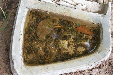 Stagnant water in the containers, cement. potential breeding ground for mosquitoes