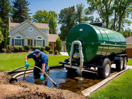 Drain cleaning, sewage truck pumping out contaminated water